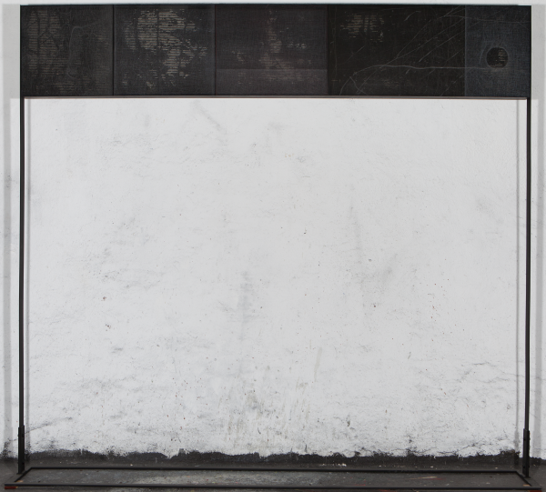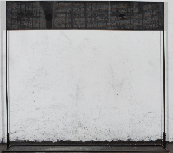 Grabado sobre metacrilato y fondo de técnica mixta